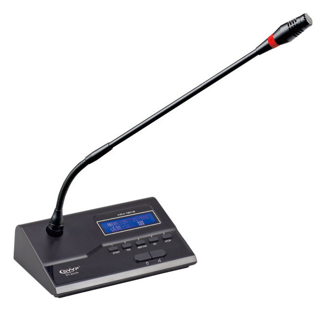 ◆ 符合IEC60194、GBT15381-94國際標準,高強度鋅合金壓鑄,外觀大氣沉穩。 ◆ 集發言、投票、按鍵簽到、表決功能于一體的會議發言單元。 ◆ 帶雙色指示燈環(紅色/白色),發言為紅色 ◆ 咪頭外殼根據聲學原理設計,配合超指向性電容咪實現高度的人聲還原,帶聲頻啟動功能,發言時話筒自動打開。 ◆ 系統單元熱插拔功能,超強的抗手機干擾能力。 ◆ 具有消咳鍵,當發言人員咳嗽時,可暫時關閉麥克風,防止咳嗽聲傳到會場。 ◆ 具有話筒開關鍵,6個投票表決鍵,服務呼叫功能幫助鍵,中文簡體、繁體、英文菜單切換按鍵。 ◆ 高精度超亮度128*64LCD液晶屏,清晰顯示單元工作狀態。 ◆ 本會議單元的ID號碼、申請發言人數、表決結果、簽到人數以及各種操作信息等內容。 ◆ 單元由主機供電,輸入電壓為24V,屬于安全電壓。 ◆ 主席單元具有優先鍵、批準鍵。支持連接電腦將代表話筒設置VIP話筒,VIP不受主席控制,連接位置不受限制。