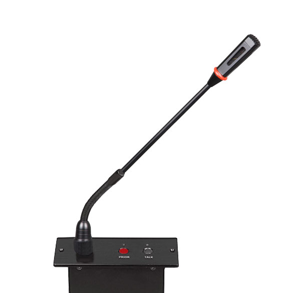 ◆話筒音頭采用最新聲學研究成果,使用金屬鋁合金四方形結構;使得語音更加清晰厚實,頻響寬廣,靈敏度高不易產生嘯叫等持點。 ◆菜單采用藍光大液晶屏,能顯示當前所操作功能 ◆數字DSP電路處理,最大限度減少失真,使語音更加清晰,頻響更寬 ◆話筒鵝頸與底座可分離,螺旋方式固定,杜絕雜音產生 ◆話筒所有按鍵采用高品質長壽命,防潮防塵靜音開關,杜絕出現“砰砰”聲的開關震動聲 ◆話筒采用不帶線設計,連接線采用即插即用方式,不用時可自行拆除方便工程安裝維護和用戶需要拆除、移動或變更位置 ◆抗手機、RF射頻干擾