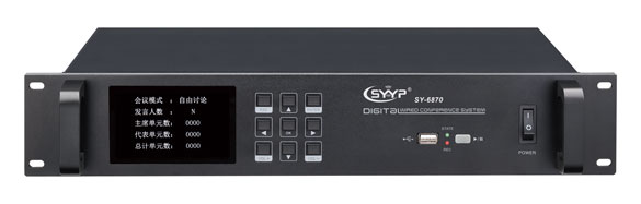 1. 采用全數字集成電路技術,集會議討論、視像跟蹤、電子簽到、投票表決功能于一體。 2. 七種發言模式:先進先出、后進先出、主席專用、限制發言、自由討論、壓倒輪替、申請發言。 3. 七種發言人數:1-6(人可選 )、N(全開放)。 4. 采用輕觸式九鍵控制菜單,并支持中/英文切換等功能;LCD屏顯示工作內容。 5. 自帶防嘯叫功能,開啟移頻功能可以有效地抑制嘯叫、擴展音量,增加拾音距離,保證語音的傳送質量,保真度高,聲音清晰。 6. 通用USB錄音接口,支持熱插拔,可隨意配搭常用電子產品使用。 7.備PC軟件,電腦操作隨意控。主屏/副屏同時顯示表決內容,彰顯會議公開化。 8. RS232端口可外接PC,結合加密型軟件聯動操作,也可連接中控,令會議設備更智能化。 9. 主機可以連接60個會議話筒單元,分四路并聯輸出,每路可連接20個單元,可無限增加電源擴展或數據擴展。 10. 連接狀態不正常時產生鋒嗚,按OK鍵可停止鳴叫;并具有智能斷電記憶功能,可記憶程序運行狀態,若意外斷電后,通電后即恢復最后一次設置。 11. 內置電話偶合器輸入和輸出端口,可用來召開遠程電話會議。 12. 連接視像頭可實現發言實時視像追蹤功能,支持4路攝像頭信號輸入,2路視頻輸出;三種攝像機通訊協議,兼容性強: Pelco_D 、Pelco_P 、VISCA。 電源供應: AC-100-240V 50/60Hz 輸出阻抗: RCA:200歐 LINE:200歐 BALANCE:300歐 UNBALANCE:400歐 輸入阻抗: LINE:50K歐 DIN:50K歐 信噪比: 100dB(1KHz THD1%) 機箱尺寸: 480X360X85MM 附件: 10M 8P 屏蔽線 SY-870A主席單元(下圖) SY-870A主席單元功能參數: 1、智能數字化設計控制電路,功耗低。 2、外置三鍵表決、電子簽到功能。 3、獨特的40CM長管,360度全方位旋轉設計,可拆卸;高保真單指向性電容咪芯,拾音距離遠、聲音還原度好、清晰度高、噪音小。 4、主席單元有優先發言權,可隨時關閉其他列席單元。 5、128X64LCD液晶,顯示單元身份、發言模式、發言狀態、發言時間。 6、優良抗手機干擾能力。 7、無噪音輕觸開關設計,操作靈活; 8、獨有音箱網外觀設計內置揚聲器,可用于會議擴音及播放會議背景音樂。 9、輕觸開關音量控制設計,可調節音量大小。 10、左側設計有3.5音頻輸出,收聽其他列席會議發言內容。 11、會議單元支持熱插拔功能,自帶2.1米8P連接線;手拉手連接模式,安裝簡便,操作靈活。 類型: 電容式 指向性: 單一指向性 頻率響應: 30Hz-18KHz 靈敏度: -43±2db@1KHz 輸入電壓: DC 9V(主機供電) 最小輸入阻抗: 1千歐 新噪比: 68 dB 輸入導線: 2.0M 8P屏蔽線 附件: 防風海綿、2.0M 8P T3M屏蔽線 SY-870B代表單元(下圖) SY-870B代表單元功能參數: