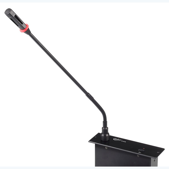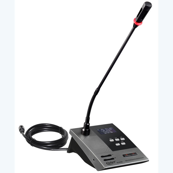 ?嵌入式設計 ?主席單元有優先發言權,可隨時關閉其他列席單元。 ?主席單元擁有批準代表發言按鍵,象顯身份權利。 ?鋁合金面板具有紅色發言指示燈?智能數字化設計控制電路,功耗低 ?金鋁合金設計,美觀、時尚、經久耐用 ?高保真單指向性電容咪芯,聲音還原、清晰度高、噪音小; ?優良抗手機干擾能力。 ? 315度全向彎折不銹鋼軟管 ? 單元自帶2.1米單出8p連線,配備T3N連接線,安裝簡便,提高安裝的效率 ?會議單元支持熱插拔功能,自帶2.1米8P連接線;手拉手連接模式,安裝簡便,操作靈活類型: 電容式 ?類型:電容式 ?指向性:單一指向性 ?頻率響應:40Hz-16KHz ?靈敏度(:-43±2dB@1KHz ?輸入電壓:DC 9V(主機供電) ?最小輸入阻抗 :1KΩ ?信噪比:90dB(A) ?輸出插座:2.0M 8P端子座 ?輸入導線:2.0m 8P屏蔽線 ?附件:防風海綿、2.0m 8PT3M屏蔽線