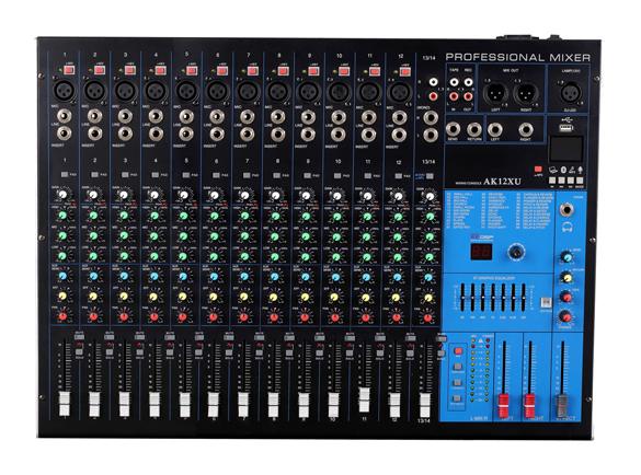 1.、輸入通道:≥12(6路單聲道輸入,3路立體聲輸入,1路立體聲RCA輸入,2路左/右立體聲輔助輸入);