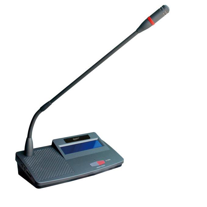 ◆ 具麥克風發言按鍵及發言指示燈,可控制及顯示麥克風開啟/關閉; ◆ 單指向性、具防氣爆音、內建防風防護罩之功能; ◆ 具有主席優先控制按鍵,可啟動系統提示音提醒所有出席人員注意,可設定永久終止或暫停終止所有發言代表麥克風單元動作; ◆ 具有可插拔式鵝頸可繞性麥克風桿,并具有發言指示燈環; ◆ 單元由系統主機供電。輸入電壓為DC24V,屬于安全范圍; ◆ 具兩組3.5mm立體聲輸出插座,可作錄音及連接MIC用; ◆ 單元具有8芯插座用子系統“T”型連接;內置高保真揚聲器及外接耳機插孔; ◆ 可繞式電容麥克風,并配可更換式防風罩; ◆ 話筒桿具有加長型可供選擇;麥克風具有雙色燈環; ◆ 系統中主席單元不受限制,并可置回路中任何位置; ◆ 具有一組輸出插孔和一組無線MIC輸入插孔(可選項); ◆ 具有強制切斷代表單元麥克風發言的優先功能和主席優先的提示音; ◆ 具有主席專有模式:主席按PRIO鍵關閉發言狀態的代表單體后,所有代表單元不能在開啟,直至該主席單元結束發言關閉麥克風; ◆ 內建高品質喇叭(當麥克風開啟時,喇叭自動靜音); ◆ 內含會議麥克風單元連接線; ◆ 符合國際會議設備電器認證標準(IEC60914)及國際安規標準UL或CE認證; ◆ 頻率響應:80Hz~16kHz;靈敏度:-44dB±2dB; ◆ 咪桿長度:390mm;外觀尺寸:207mmX117mmX60mm;參考講話距離:15cm~50cm;凈重:1kg