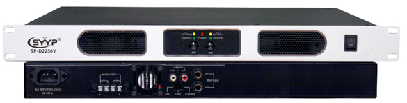D2250V產(chǎn)品參數(shù): 功放類型:1U數(shù)字功放 立體聲定阻輸出:2x250W 8Ω 立體聲定阻輸出:2x380W 4Ω 70V定壓輸出:1x750W 100V定壓輸出:1x750W 輸入靈敏度:0.775V 頻率響應(yīng):20Hz-20KHz 阻尼系數(shù):>400 最大功耗:1100W(正炫波輸出模式) 最低功耗:30W(待機(jī)模式,在10秒中無信號輸入時(shí),本機(jī)處于休眠待機(jī)模式) 失真度:<0.05%(1KHz/1W) 效率:>90% 壓縮方式:自動(dòng)壓縮 輸入方式:平衡輸入:6.3大三芯 非平衡輸入:蓮花插 阻抗:8Ω/4Ω負(fù)載自動(dòng)匹配 電壓:70V/100V自動(dòng)匹配 喇叭連接座:4pin接線座 散熱方式:前后散熱結(jié)構(gòu) 保護(hù):短路、過流、溫度保護(hù) 電源范圍;90-250VAC 50-60Hz 設(shè)備尺寸:(高X寬X深)44mmX483mmX305mm 凈重:3.5KG