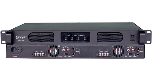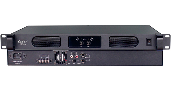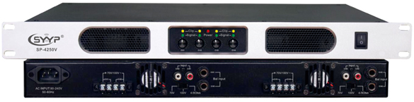 D4250V產(chǎn)品參數(shù): 功放類型:1U數(shù)字功放 立體聲定阻輸出:4x250W 8Ω 立體聲定阻輸出:4x380W 4Ω 70V定壓輸出:2x750W 100V定壓輸出:2x750W 輸入靈敏度:0.775V 頻率響應(yīng):20Hz-20KHz 最大功耗:1100W(正炫波輸出模式) 最低功耗:30W(待機(jī)模式,在10秒中無信號輸入時(shí),本機(jī)處于休眠待機(jī)模式) 失真度:<0.05%(1KHz/1W) 效率:>90% 壓縮方式:自動(dòng)壓縮 輸入方式:平衡輸入:6.3大三芯 非平衡輸入:蓮花插 阻抗:8Ω/4Ω負(fù)載自動(dòng)匹配 電壓:70V/100V自動(dòng)匹配 喇叭連接座:4pin接線座 散熱方式:前后散熱結(jié)構(gòu) 保護(hù):短路、過流、溫度保護(hù) 電源范圍;90-250VAC 50-60Hz 設(shè)備尺寸:(高X寬X深)44mmX483mmX305mm 凈重:4.5KG