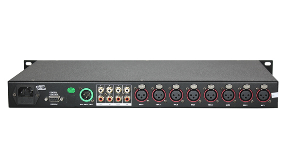 本產(chǎn)品為新一代多功能8路數(shù)字會(huì)議混音器。在傳統(tǒng)的混音器功能上獨(dú)創(chuàng)了會(huì)議系統(tǒng)功能,更具備人性化LCD和PC軟件操作界面,其中PC操作支持免驅(qū)USB連接。適合中小型會(huì)議室,多謀體教學(xué)室,法院庭審。 本產(chǎn)品支持8路獨(dú)立的混音,聲音處理采用專用音頻處理IC,聲音清晰,無(wú)雜音,整體信噪比高。每路支持獨(dú)立的幻象電源控制,聲音大小調(diào)節(jié),聲控靈敏度調(diào)節(jié),優(yōu)先級(jí)調(diào)節(jié),發(fā)言時(shí)間調(diào)節(jié),更支持常開(kāi)和禁止功能,以適應(yīng)某些特定場(chǎng)合。 會(huì)議功能支持發(fā)言人數(shù),限制模式,隊(duì)列順序和優(yōu)先模式設(shè)置,可自由組合。 系統(tǒng)具有反饋降噪功能,可自由打開(kāi)或關(guān)閉(依機(jī)器型號(hào)而定),打開(kāi)后拾音距離可達(dá)到50cm;系統(tǒng)支持豐富的中控功能。 輸入電源電壓:220V(+-10%) 功率:<50W 單路話筒幻象電源(輸出):48V(+-1V) 信噪比:>85dB 失真度:<0.5% 通道分離度:>95dB 單路話筒頻響:70Hz---18kHz 單路話筒輸入阻抗:1K歐姆 聲控靈敏度:-47dB---0dB(48級(jí)可調(diào),0為關(guān)閉,衰減>95dB) 單路話筒音量調(diào)節(jié):-47dB---0dB(48級(jí)可調(diào),0為關(guān)閉,衰減>95dB) 音量總輸出:-47dB---0dB(48級(jí)可調(diào),0為關(guān)閉,衰減>95dB) 音量總輸入:-47dB---0dB(48級(jí)可調(diào),0為關(guān)閉,衰減>95dB) 平衡輸出阻抗:1K歐姆 不平衡輸出阻抗:1K歐姆 不平衡輸入阻抗:3.9K歐姆 6.3輸入阻抗:3.9K歐姆 中控接口:支持,RS232C母 USB(TypeB母)控制:支持(免驅(qū)) 電路話筒觸發(fā)電壓:<100mV 單路話筒打開(kāi)時(shí)間:<350uS 單路話筒延時(shí)時(shí)間:1-999S 尺寸:48.1cm(W)X4.8cm(H)X25.9cm(D) 凈重:3.45Kg